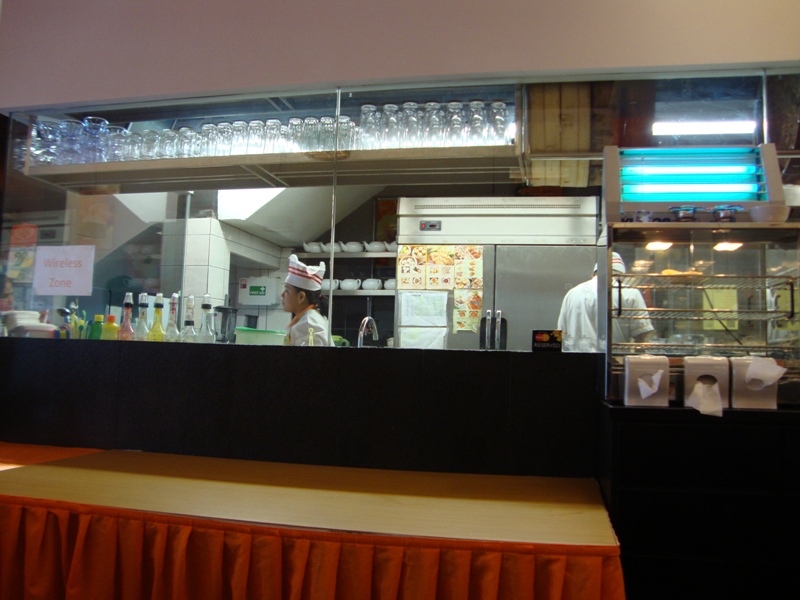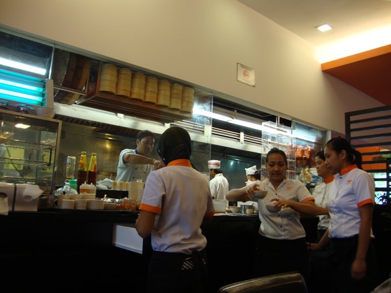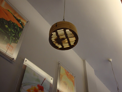 This be the interior of the shop. It was set in more or less contemporary but slightly modern taste. It's got a really interesting lighting design in which they actually use dim sum baskets for the lights! LOL And their kitchen is one of those public kitchen where you can actually watch the cooks do their thing, and you can literally see the steam and the fire as they cook the food, making you anticipate more of your meal.