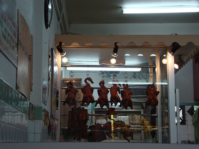 This be the interior of the shop. It looks almost exactly like the design of the ground floor at Lucky Restaurant with the hanging ducks and chickens and whatnot, and it sometimes reminds me of the coffee shops back in KK coz they were mostly of this nature