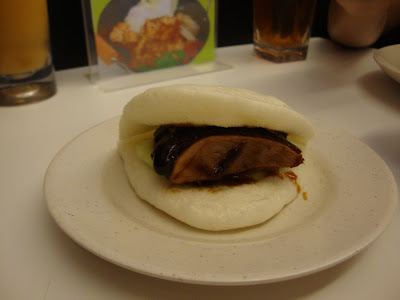 And here is our legendary roast duck burger! LOL~! We were already given a bit of a warning when my friend ordered only this and the waitress said "Only this?" but we didn't know why she said that until it actually came. It was basically roast duck and cucumber slices wrapped in pau dough! It was considered a dim sum dish, not an ala carte dish that looks like a burger we had imagined it to be. My poor friend had to settle with this one while we were eating away at our ala carte meal. LOL! I totally feel bad for him