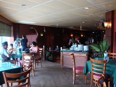 This be the interior of the restaurant. As soon as you enter, you can really smell the curry and spices that permeates the area, and if you were hungry before, the smell of it makes you hungry even more. And they've got pretty nice decors around too. Easy on the eye, and a great view of the city when you pick a window seat, in which we did.