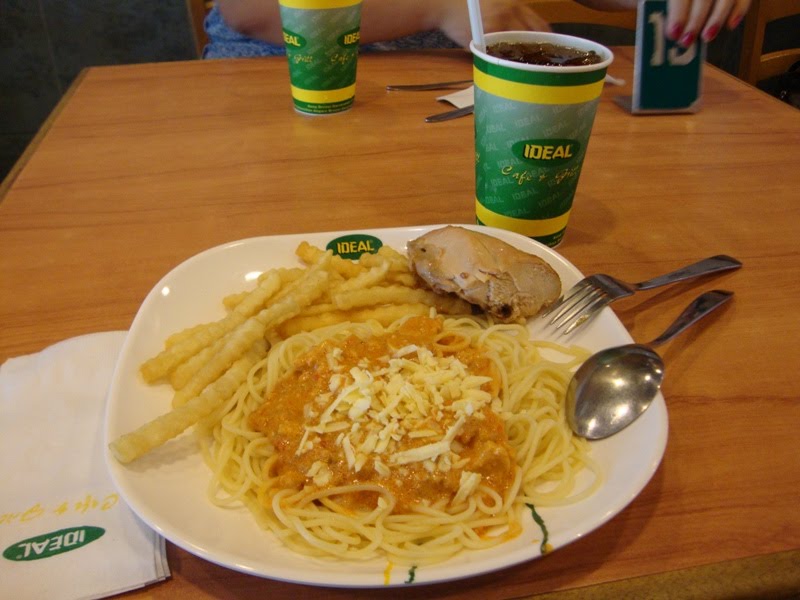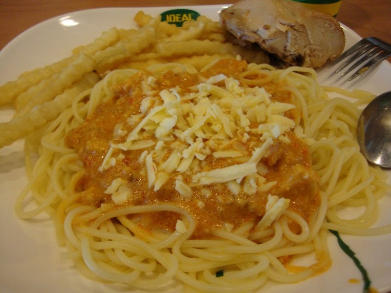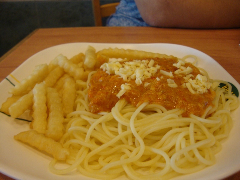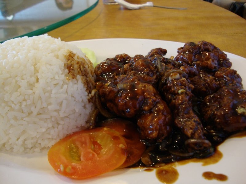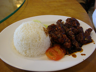This is what my friend ordered: Pai Gu Wang with rice. It's pork chops with (probably) barbecue sauce and tomato and cucumbers for condiment along with rice. It looks delicious,and my friend said it to be delicious as well. Wonder how it really taste like. I never tried it though