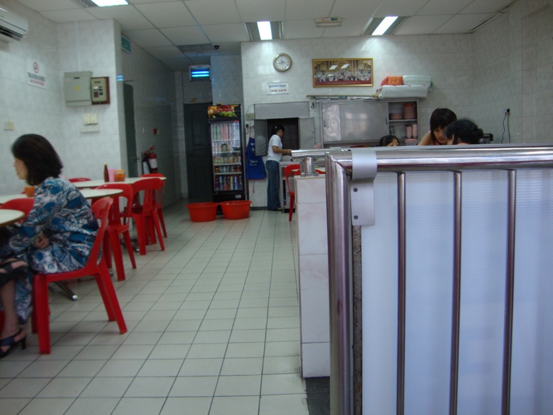This be the interior. Like all Chinese kopitiam and casual restaurants, they have the seats both indoor and open air and also peekaboo side seats for privacy and comfort and more or less a display in which you can pick whether you would like roasted or steamed chicken. Of course, it doesn't only specialize in chicken rice. You can order other stuff, but it's still famous for its chicken rice