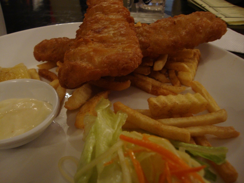 All three of us ordered fish & chips because it seemed to be the only thing that is more or less one of the cheapest around in the menu. It tastes pretty good and authentic, but can you imagine it actually costs RM19.90 for this? What did they use to make this with? A barracuda? And they could've been a bit more generous with the fries and mayo.