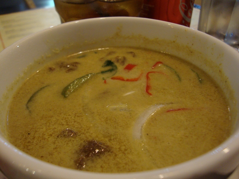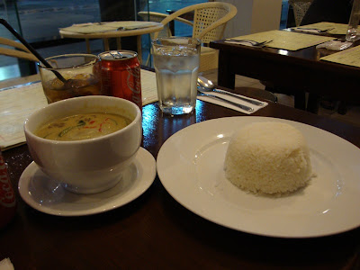 This is what the birthday boy ordered: Green curry with rice. It seems to me that he had somehow developed an obsession with green curry whenever he's ordering something Thai. LOL XD Looks a little watery, but it's basically the oil floating on top, and it tastes pretty good, but I let him have it all since I was really enjoying my noodles a lot.