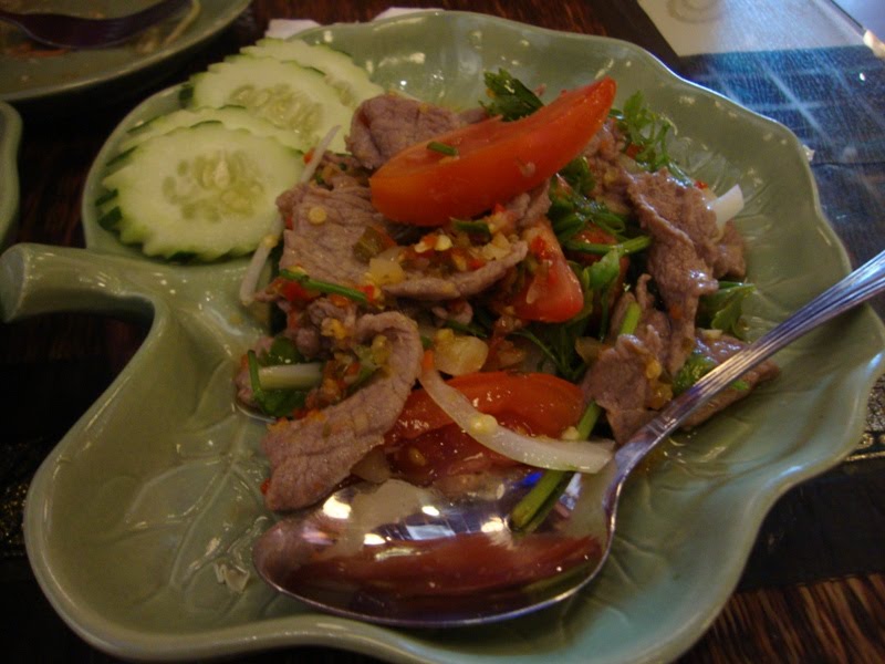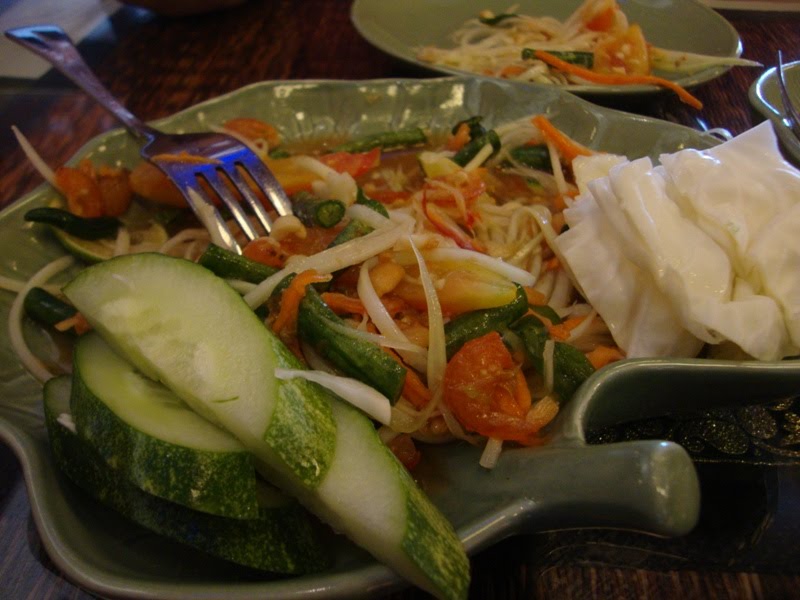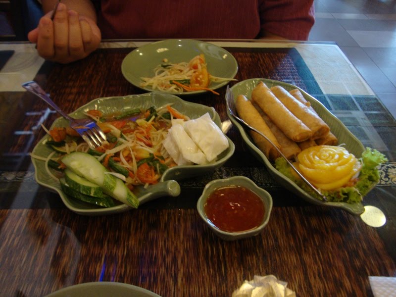 Here's our order: papaya salad, beef salad and spring rolls. Good ol' treats that are probably enough as appetizers and not exactly a main course meal, since we're technically a little broke