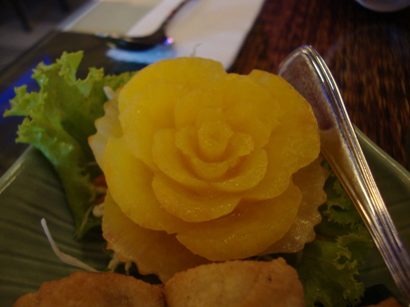 The spring roll is by far the best tasting food among the ones we ordered. The skin was crunchy, the meat and veggies inside were just the right taste, put them together and we have a mesh of taste that simply is divine. And the decor that goes with it is just too cute not to take a picture of, and even harder to want to eat it, so we just left it as it is. Though I do wonder how are they able to carve it so good, and using what fruit or veggie to do this