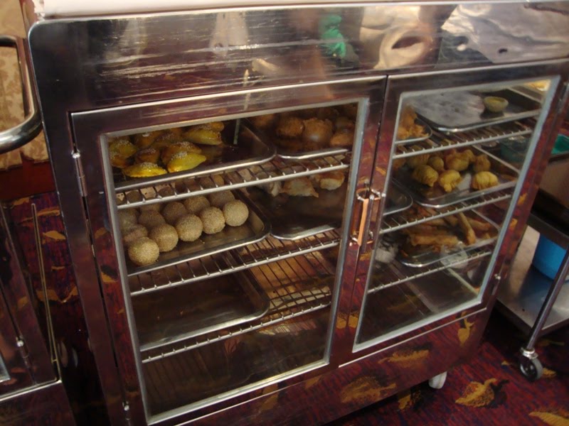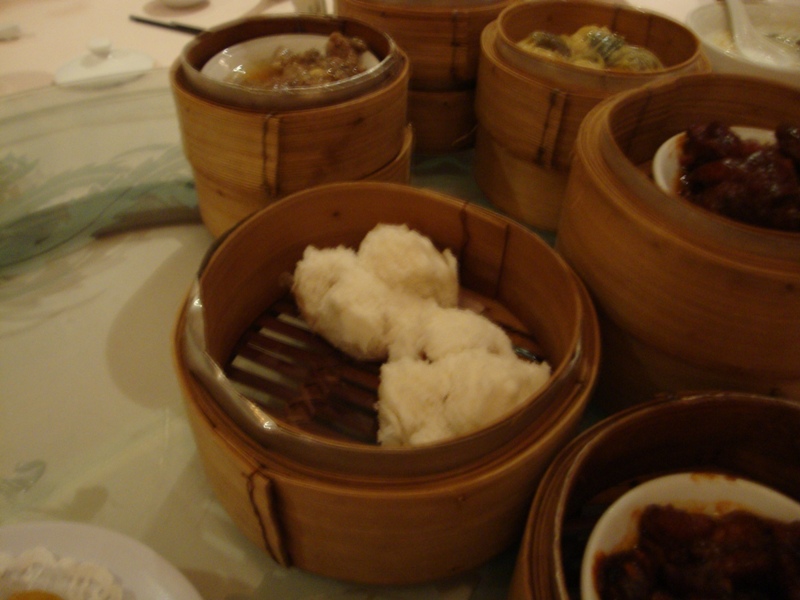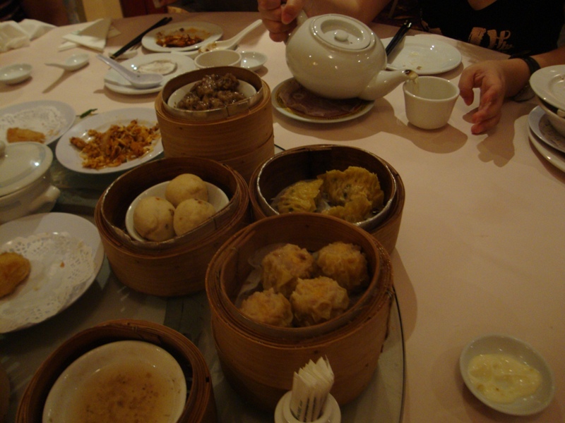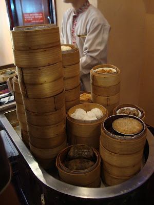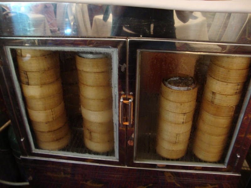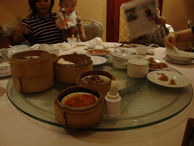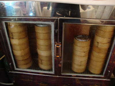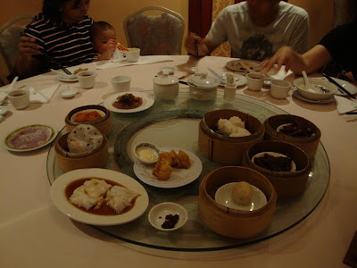 Some of the food displayed outside, in which we have to stand in a line and make our order and our pick as to which dim sum to eat. Though halfway through ordering they had to re-call all the har kau (prawn dumplings) because of something inside it. Whatever it is, we don't wanna know. We just wanna eat! XD