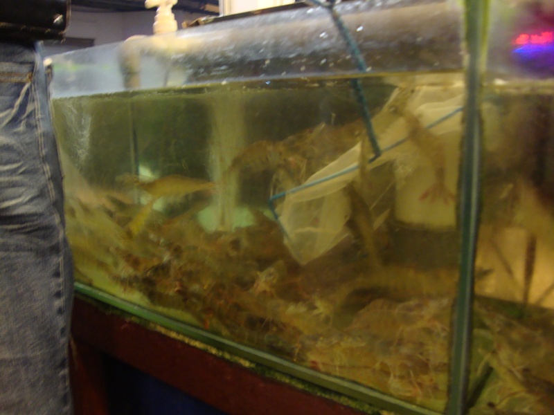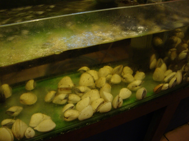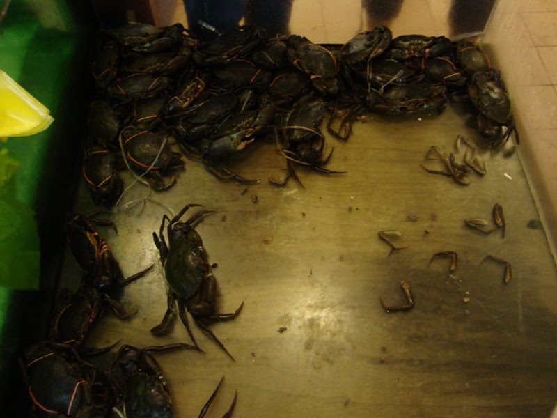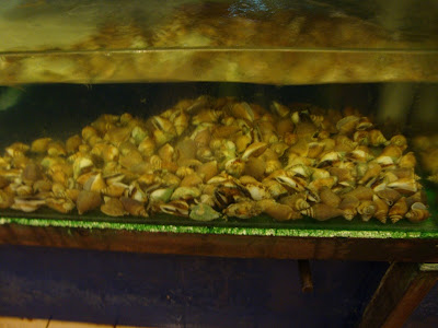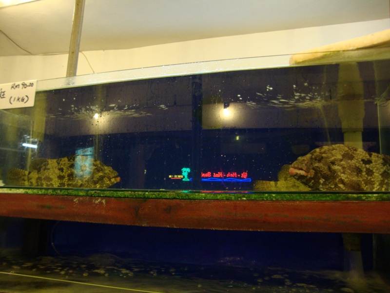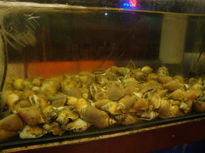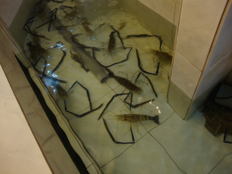 This be some of the things that was on display. It's for the benefit of the customers so they know their food and can choose what to eat. Though I feel a little sorry for the fishes and whatnot, being put there in display, waiting to be eaten. LOL! Apparently according to my friend, that pink fish was supposed to be a pet and not to be eaten, but ah, maybe this restaurant is different, or maybe it's there for pure display and will be the lucky one to escape the frying pan. The crabs were pretty huge, and the prawns were like "Woah~! It has claws~!" kinda feeling. We were definitely in for a treat.