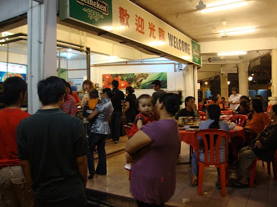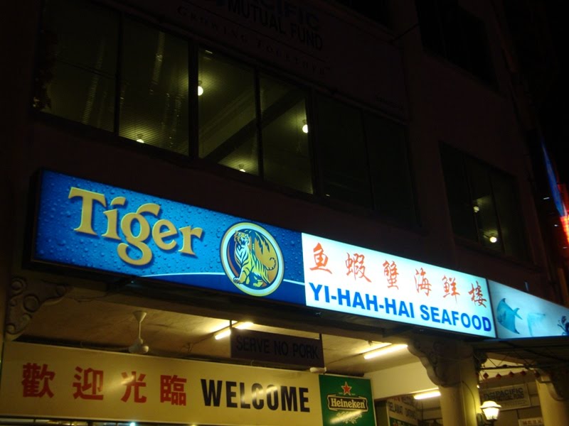 Last few weeks ago I went down to Miri to go studio-hunting with my hubby, and our trip seemed to have ended up upgrading into a semi-company trip when everyone wanted to join in (well, almost everyone). We reached Miri at about 5, 6pm and we definitely needed to go have a chow down after such a long trip and making it safely to our hotel. So we followed my hubby's colleague's boyfriend (who is a Miri-an) and he took us to a seafood restaurant called Yi-Hah-Hai Seafood.