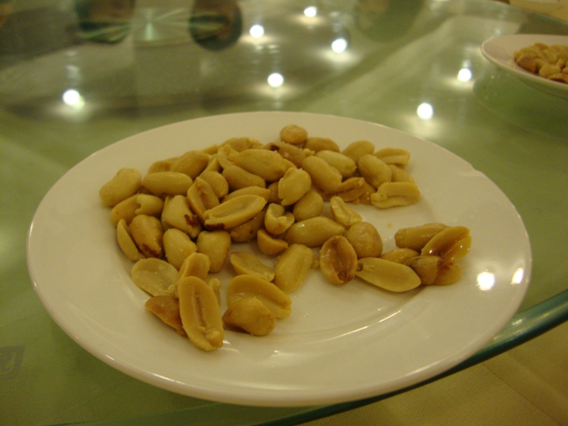 Our typical Chinese appetizers of salted peanuts, which my hubby is still struggling to use chopsticks to pick them up