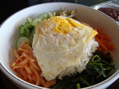 This is what my friend ordered. I'm not sure what is it called in Korean, but it's basically a huge assortment of vegetables with a sunny-side up egg and rice. I swear I've never seen rice buried undeer so much veggies! LOL
