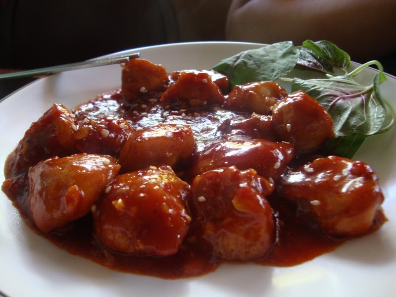 This is what my other friend ordered. Again, I dunno what it's called in Korean, but it's basically chicken smothered in red sauce with rice. I didn't try it, but it looks pretty tasty