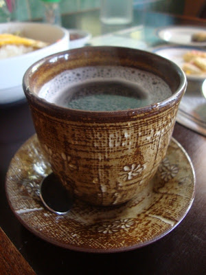 This is what my friend ordered: Korean ginger tea (or something like that, not really sure). The one thing I'm impressed is the cup itself. Looks very orientally retro and cute.