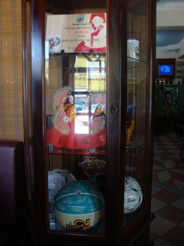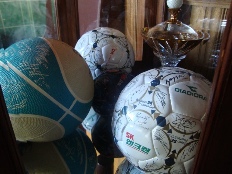 Trigger-happy moments where I took piccies of the display items they have while we were deciding on a seat. Really cute tiny porcelain dolls dressed up in Korean style, and awesome-tastic footballs that had been signed, sealed, delivered! And also a weird and disturbingly delightful ginseng concoction