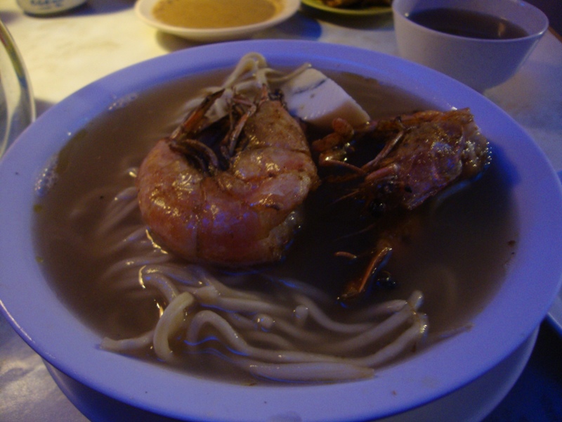 This is what I ordered: Prawn mee. Technically I wanted to eat kangkung belacan with rice, since I never get to eat it at home, but they ran out, so I went for the next best thing. The soup was actually...sweet in a way. Sweet in a sense that it kinda gives off the weird after-taste later on. Blergh. But the prawn was pretty good, though the sambal as condiment was not entirely flavourful. And can you believe that itty-bitty portion cost $4.50?