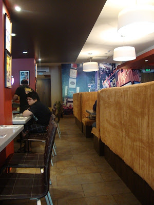 But seriously, this place does give off a very modern yet classy feel to it, almost retro in retrospect (no pun intended), like one of those American dine-ins style. It was almost full-house coz of lunch hour, and you can really hear the hustle-bustle of the restaurant as the waiter/waitresses walked around serving while the customers chatted as they ate. Really feels like an American dine-in