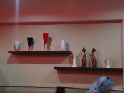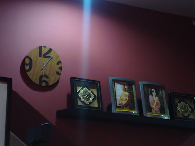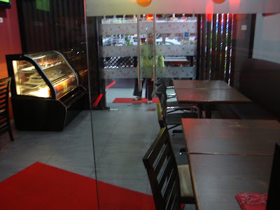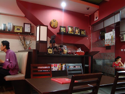 This be the interior of the restaurant. Nice and cozy, and really go all out with the red design, coincide with their theme "cherry", which is, of course, red. Their ornaments and decors look pretty cute, especially the clock and the little vases and ornament kitties on the shelf