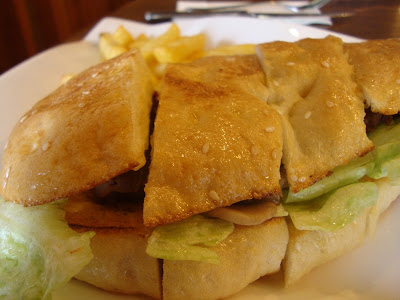 This is what my friend ordered: beef club sandwich (or something like that, we couldn't remember the name). I took a piece to try from him and taste really juicy, especially the meat itself. Mm-mm! Nice, fresh and juicy, and the bread was one of those fresh-from-the-oven kind of taste, and it was a taste to die for. According to my friend, this is all home-made and self-baked, even the bread as well. Awesome!