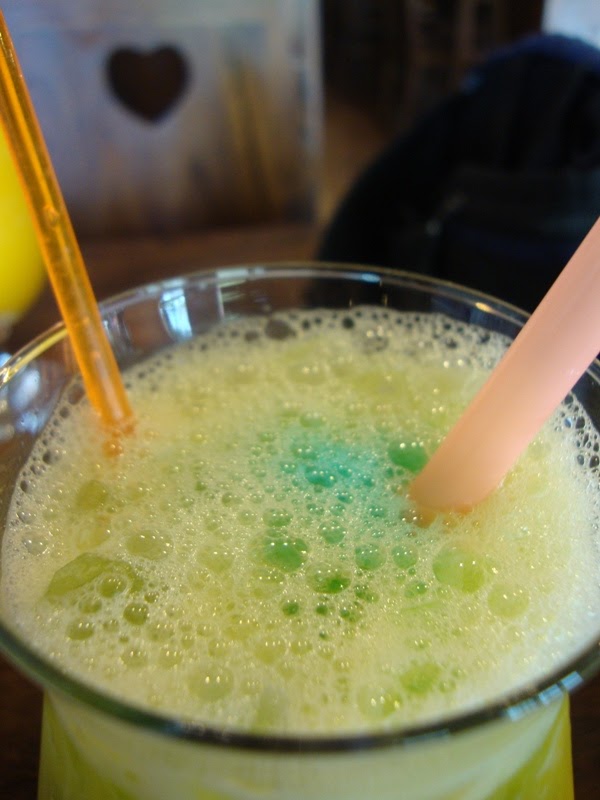 My drink after mixing the blue and yellow together, and it don't really look too much like Brunei sunset anymore, since I've never seen a green sunset before in my life XD