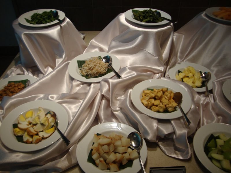Appetizers and salad, with an assortment of sauces, which is definitely hotel-fresh and quite yummy, and I get to eat kangkung~!
