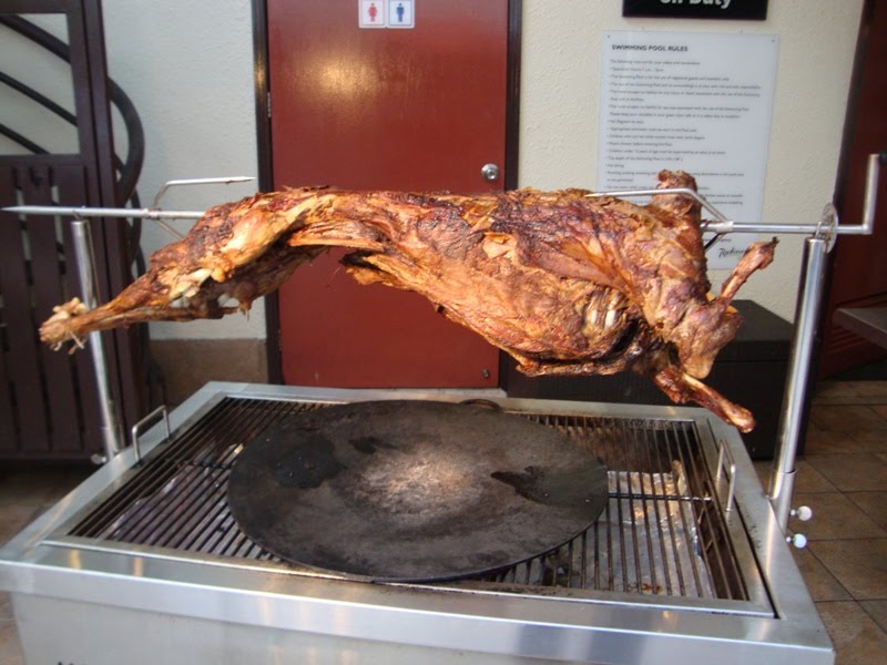 Grilled poutry like beef, lamb and chicken with sate and a whole big lamb roasted on a spit