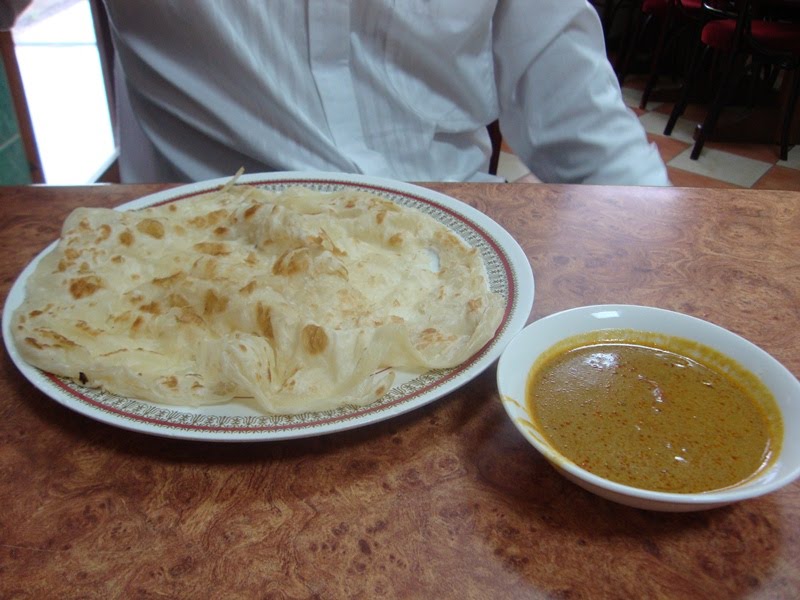 This be what we ordered: Roti kosong with sauce. It's basically roti canai without anything added like eggs or whatnot and the curry as the sauce to eat with it. Personally I prefer my sauce to be condensed milk. Nothing beats eating bread like have sweet stuff to compliment it
