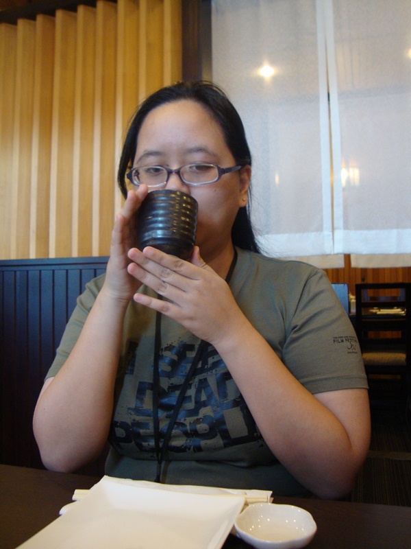 Le proper way of drinking tea by the old-school Japanese: Using your index finger and thumb to support the top side and the bottom, then use only your hand at the bottom to push and tilt the tea to drink. LOL! I'm a sucker for aesthetics. Sue me