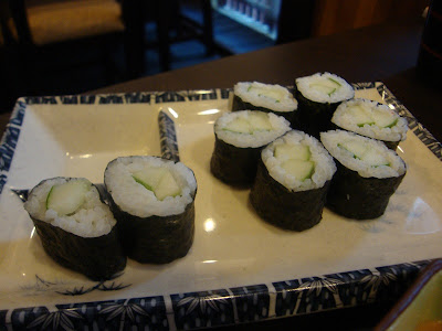 My friend also ordered another side dish of cucumber sushi that was not included in the big dish, but served separately. I tried one. Not too bad. It's just weird to eat veggie sushi though when it supposed to be meant to have seafood in it