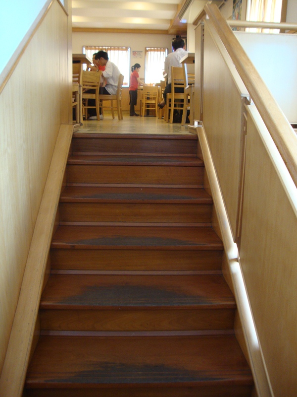 We decided to eat upstairs, so up we went. Nice stairs with cute polished wood.