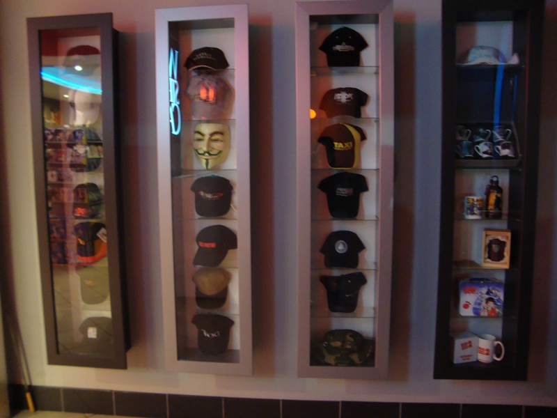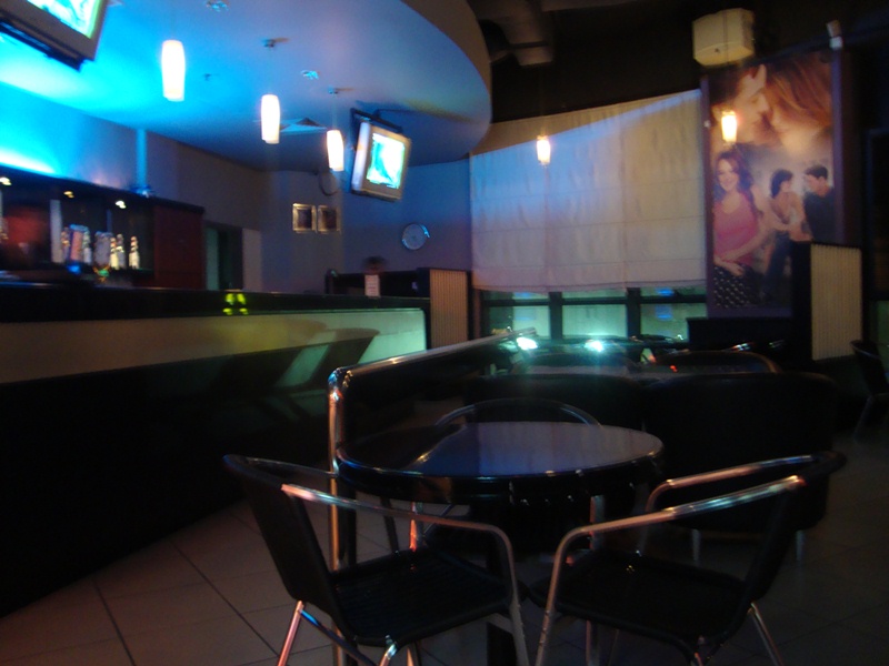 This be the interior of the cafe. Very small, but not cramped, though it's almost constantly dark and gloomy with very little lights on except the ones on the side and the corner. Not exactly good for the eyes, but at least it's good for privacy. I like their display of masks though. Very interesting, especially the Guy Fawkes mask of V for Vendetta. Makes me wanna just smash it and grab the sucker for my own