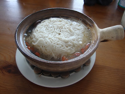 This is what I ordered: Chicken mee sua, which is basically meehoon with chicken herbal soup. Just thought that since it's really quite rare to eat mee sua in a Muslim country where the main ingredient for the herbal soup was rice wine, I better savour the moment of being able to have a chance to eat it. It tastes wonderful, just like a mee sua should, and the soup was friggin' awesome. I enjoyed every bite of it. It's the best mee sua I've eaten so far since the last time I had it in Jenny's Noodles, which was another Chinese restaurant in Kiulap which had shut down to be replaced by a vegan restaurant