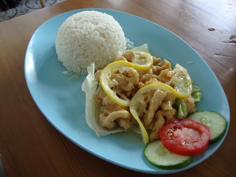 My hubby ordered lemon chicken, which looks pretty delicous. Of course, he didn't want to eat the lettuce and the tomatoes and cucumbers, so I helped him eat them, and you can taste that sweet and sour sauce of it