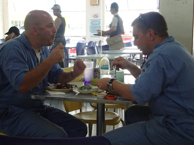 A little bit of eye-candy while waiting for my food to arrive, LOL! XD They're obviously expats hired to do construction work, and boy, do they have the manly bara features ;p