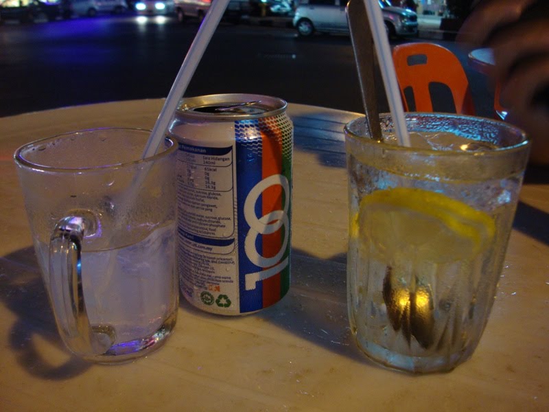 This be our drinks: 100Plus and ice lemon. Dunno what possessed me to drink something cold when it tends to freeze like hell in Miri once it's night time, but I drank it anyways