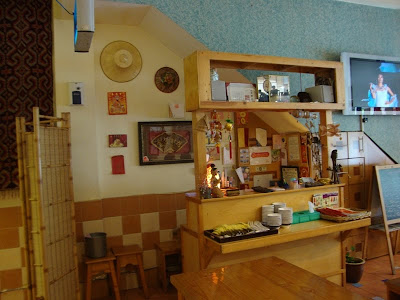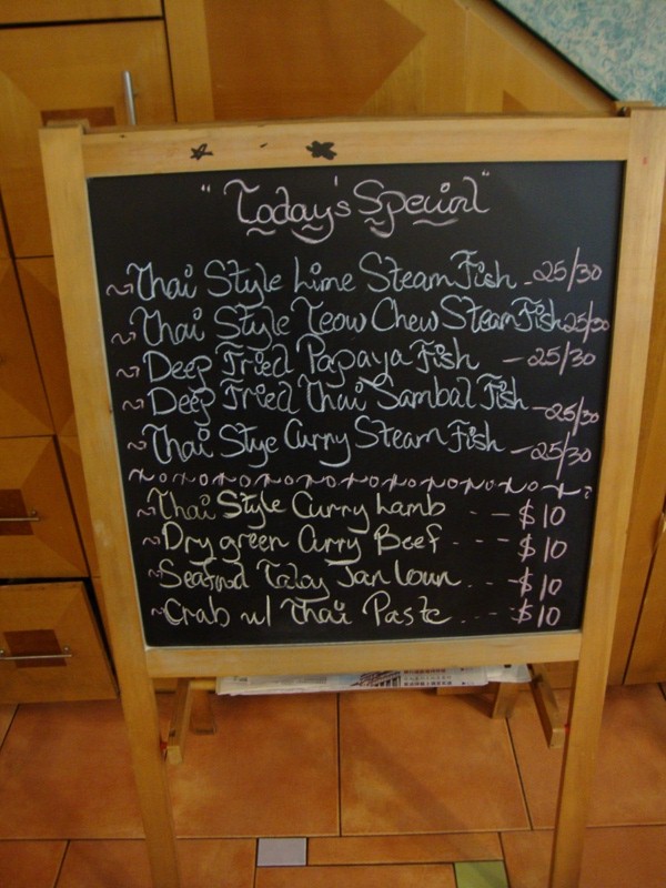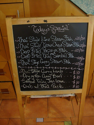 This be the interior of the restaurant. It's nice and quaint, with the sounds of Thai broadcasting out from their TV that somehow managed to have Thai channel of some sort, though I doubt that the workers there were anywhere Thai for sure.
