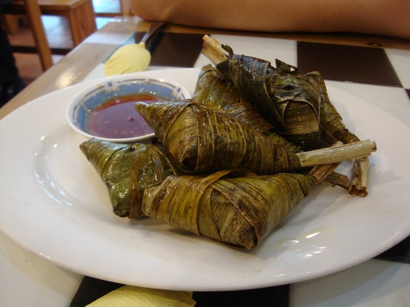 We ordered pandan chicken as well, basically Thai version of broiled chicken wrapped in pandan leaves. The moment the food came out we could really smell the pandan mixed with the chicken fragrance in it, and it totally made our mouths water