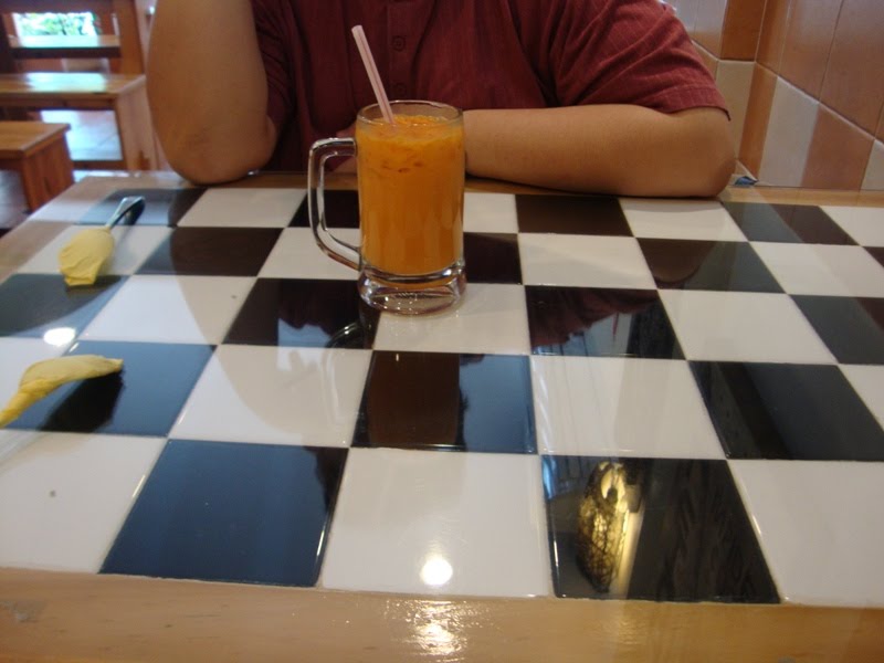 I absolutely love the table we were sitting at. If we're chess enthusiasts, we could just bring the chess pieces and use this as our board. LOL!