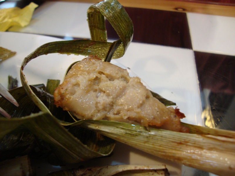 Le inside of the pandan, revealing the chicken. Nice and tender, easy to chew and the flavouring was just right, really yummy stuff