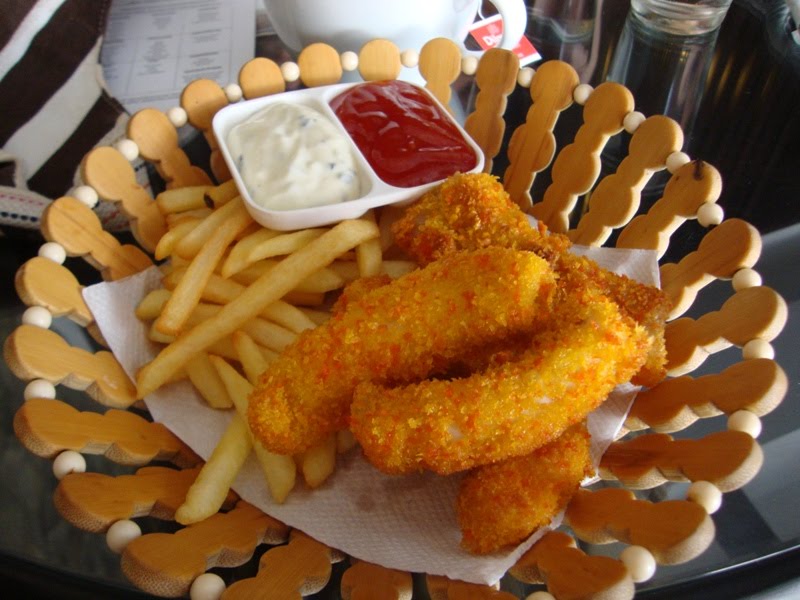 This be my order of fish and chips. Surprisingly this was not the fish and chips I have expected. The usual fish and chips I know would be huge and needs a fork and knife to cut them up, but this one is more like finger food style, probably the ones that they sell in the streets in foreign countries where they serve in newspaper rolls and you eat as you go. Pretty interesting version, I have to admit, and the taste was not too shabby either, though not entirely filling as a normal fish and chip would