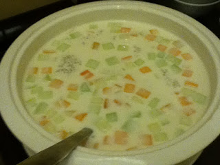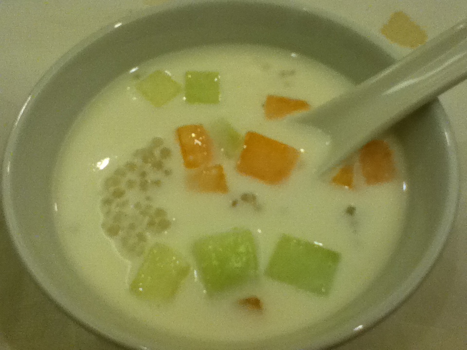 My hubby finally got to eat the dessert he didn't get to eat during the wedding, which is the sago chilled sweet soup (due to the games being late and Mike being a chatterbox). Nice and sweet, and tastes delicious chilled. Though to be honest, I'd prefer if it were just as it is with the sago and the sweet soup. The honey dew was a bit of an overkill