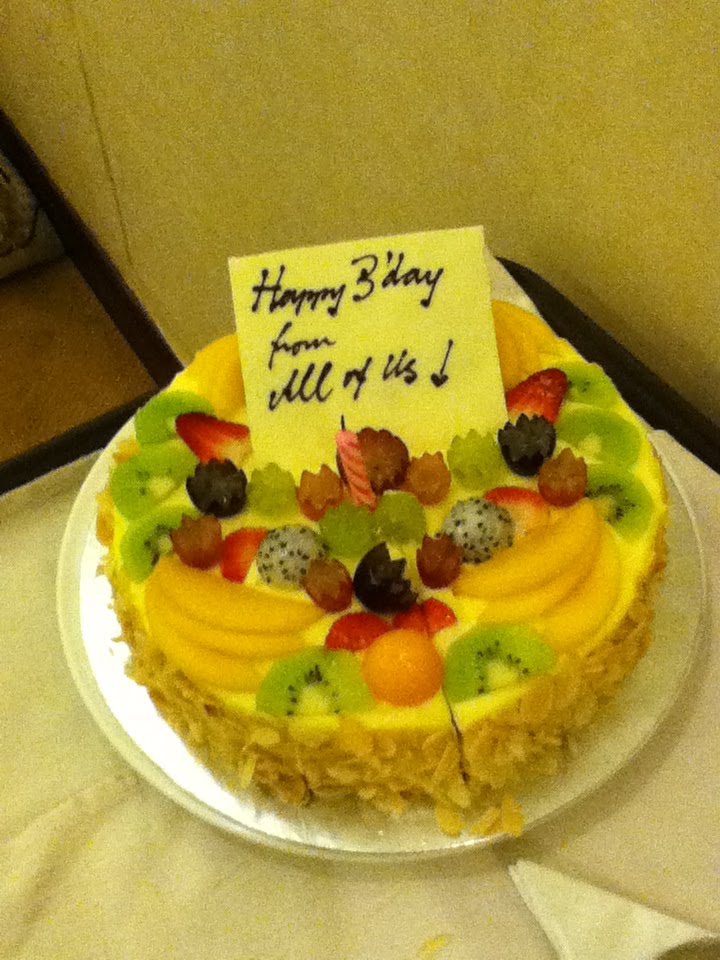 The other "dessert" we had was of course, the creme de la creme of the event: the birthday cake! After wishing my hubby's grandma Happy Birthday (she's 89!! Can you believe it?!) and singing the birthday song (as well as letting the kids blow out the candles by demand XD), we had some cake each. It's the usual fruit cake, with the a combination of fruits as topping and filling, and oddly enough, even though my mom-in-law said it's just regular cake with nothing else special on it, it tastes suspiciously like cheese