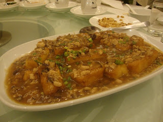 Next up, tofu cooked with mince meat and mushroom dices. Usually we eat that with Japanese tofu, but in this case, we decided to eat with the longish tofu, though I feel it's probably still Japanese tofu but made into this shape because the taste and texture is exactly the same