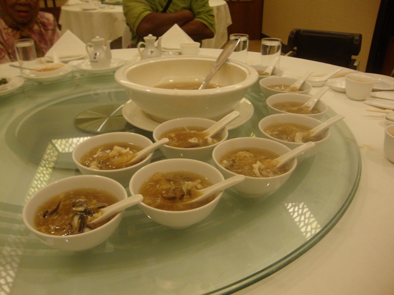 First stop: Fish maw soup. Tastes wonderfully delicious, almost like drinking shark fin soup or something, and goes quite well with vinegar. Not too much, just a little bit. For shark fin soup, a little bit more is good, but for this one, little bit is better on the safe side