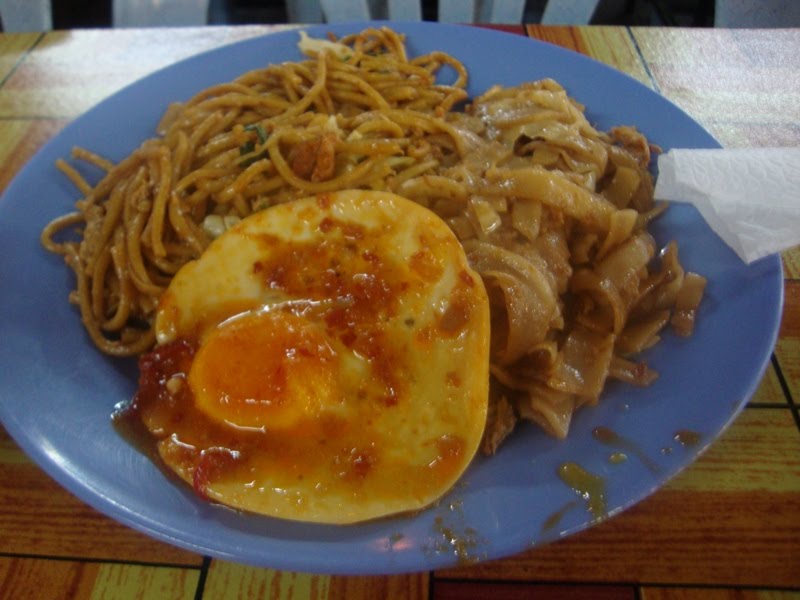 He ordered a mixture of noodles combined together (meehoon, mee and kuey tiaw) with a fried egg on top which looked like it's one of those that was drowned in sambal or Thai sauce or something XD