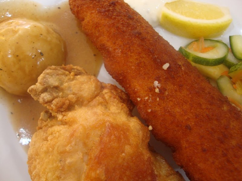 My friend ordered a mixed platter, which consists of fish, chicken, mash potatoes and acar cucumbers. According to my friend, he likes the chicken here because it's crunchy on the outside and juicy on the inside, even for chicken breasts where as KFC is dry. I disagree. KFC still rules when it comes to chicken Xd