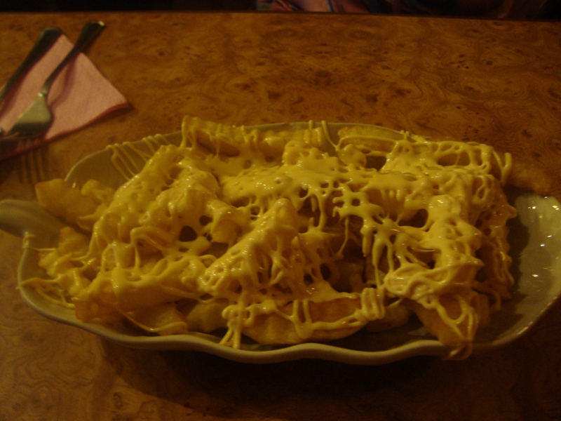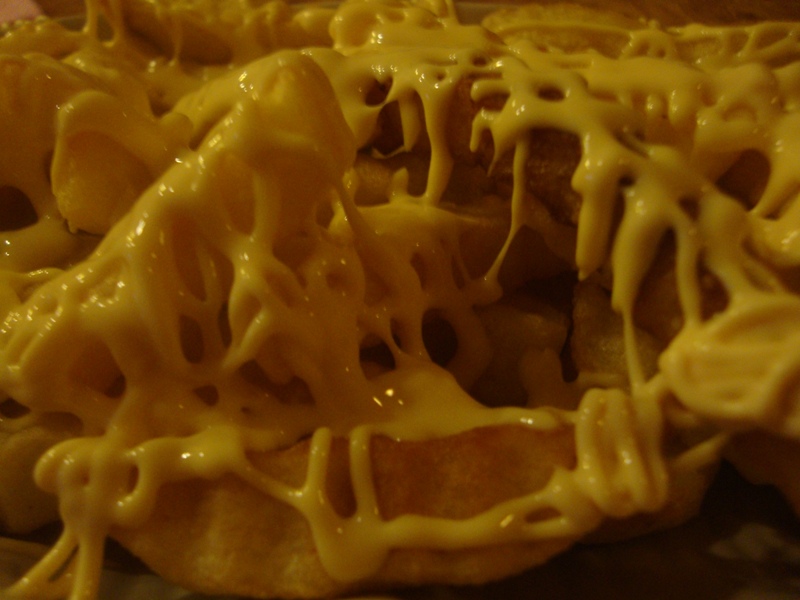 My friend ordered fries with cheese sauce, and it looks like it is just literally buried in cheese and such, though still cannot compare with the cheese that was used for KFC wedges. Now that's cheese!