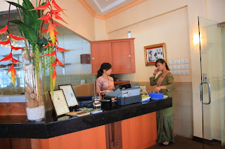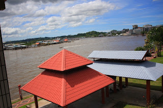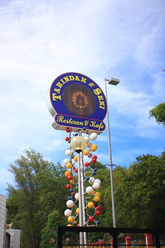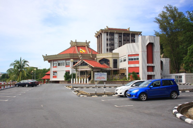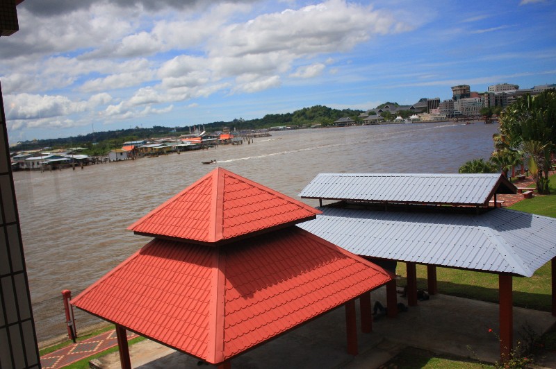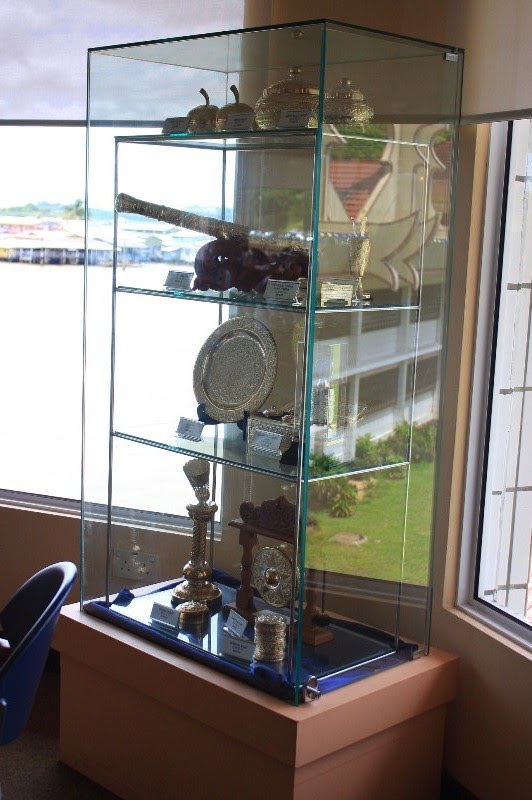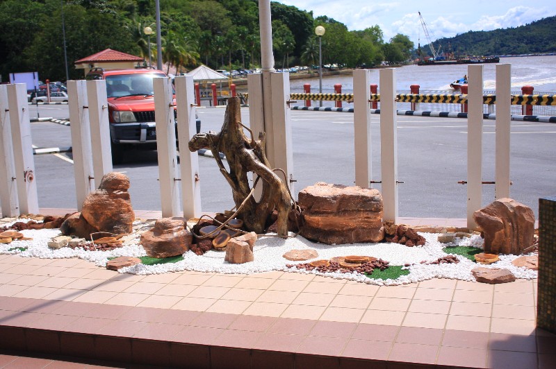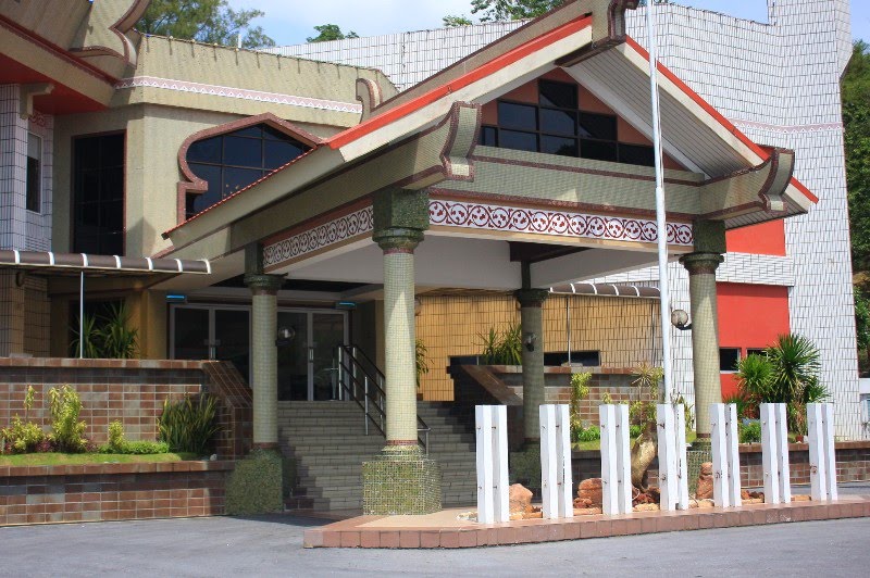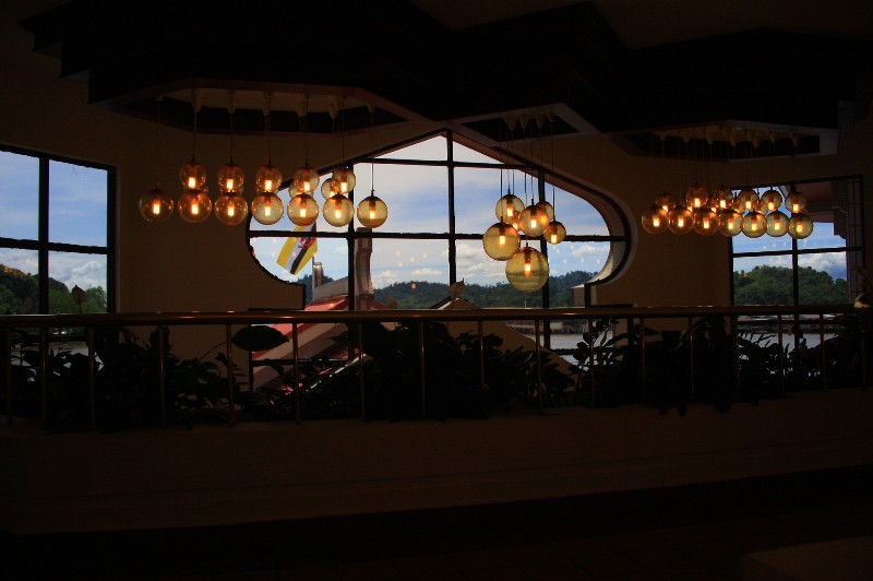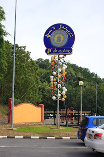 This be the carpark and signboard of the building itself. It's situated within the town area and it is actually inside the Arts and Handicraft Centre, which is on the way to the Brunei Museum. It's got a pretty nice view that overlooks the Brunei River and you can have a scenic view of the water village just across. A perfect contrast between town and country