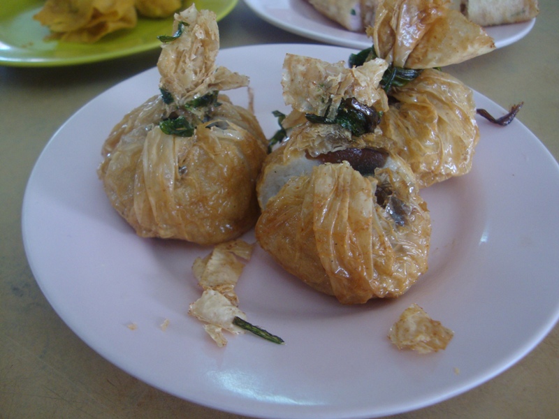 Diced vegs with tofu wrapped in extra tofu skin...