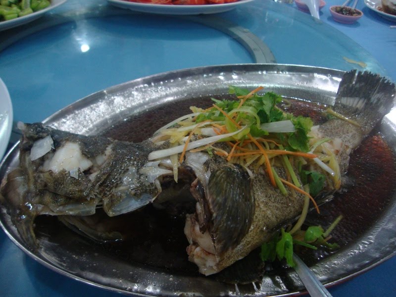 Steamed fish (amazing head, pun not intended)...