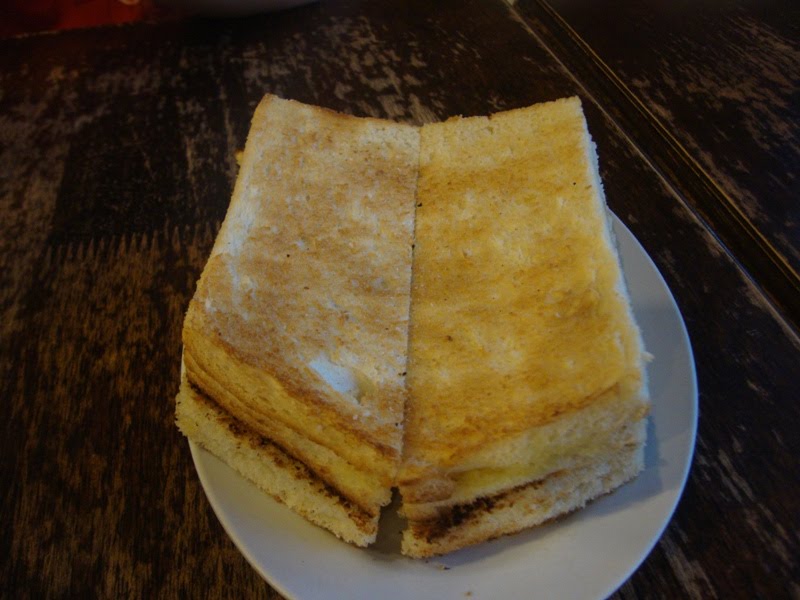 The snack we ordered, which is roti kahwin (literal trans: wedding/marriage toast) in kaya and butter. Tastes pretty good, but not as crunchy as I would have liked my toast to be